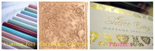 Úsáidtear iad chun gach cineál scragall alúmanaim daite a stampáil te agus le cabrúnó le bás a ghearradh ar chineálacha éagsúla pictiúr, Ticéadú éadaí, cártaí beannachta, trádmharc, clúdach leabhair, leabharnótaí, cartáin phacáistithe, boscaí páipéir, málaí páipéir, ceap corc, fillteáin, agus ábhair mhaisiúcháin agus priontála ardghráid eile, etc. Tána hábhair táirge oiriúnacha san áireamh páipéar, cairtchlár, plaisteach (PVC, PP, PE), leathar, adhmad agus corc, srl, ionas gur trealamh riachtanach iad chun monarcha a phriontáil, fiontar pacáistithe agus déantúsóir stáiseanóireachta oifige.